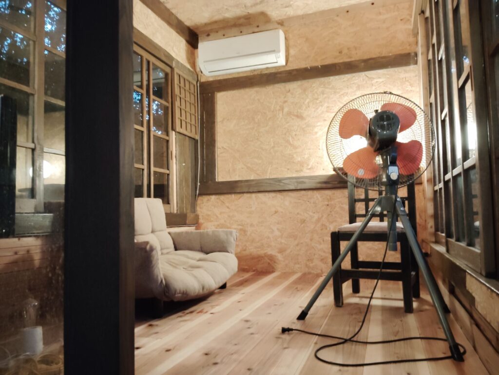 アウトドアに不慣れな方でも安心して楽しめるよう、室内にはエアコン、冷蔵庫、電子レンジ、Wi-Fiなど生活に必要な設備を完備。