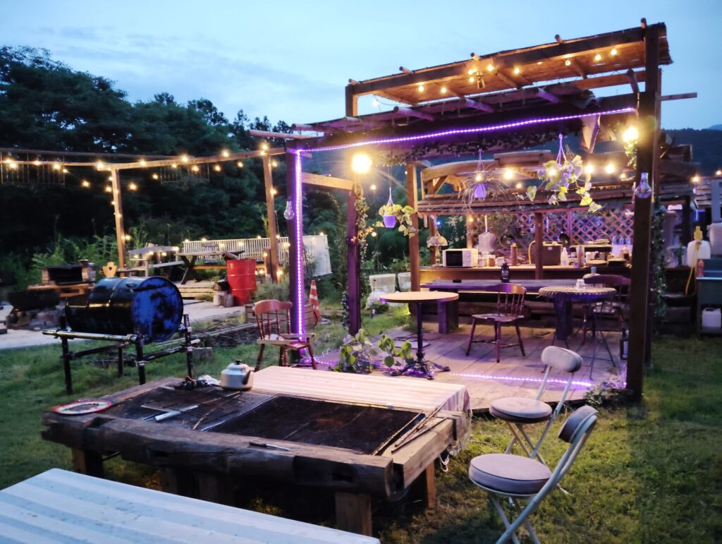 エアコン付きのロッジ、Wi-Fi、冷蔵庫、バーベキュー設備、こだわりの照明などを完備しています。